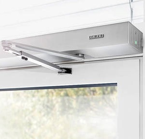 Die Besonderheit: Antrieb und Rauchschalter bilden optisch eine Einheit, wobei die GEZE-typische Design-Antriebshöhe von nur sieben Zentimetern erhalten bleibt.